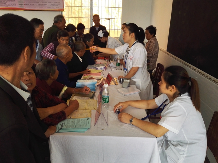 2015年9月17日,我院义诊团队来到青林乡姜岩村,为当地群众免费检查身体。